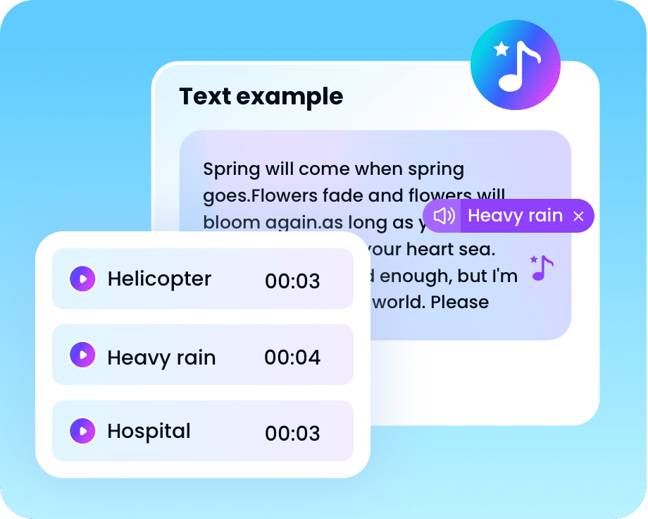 Use mood-driven music and effects to add atmosphere, highlight emotion, and bring more dimension to your voiceover.